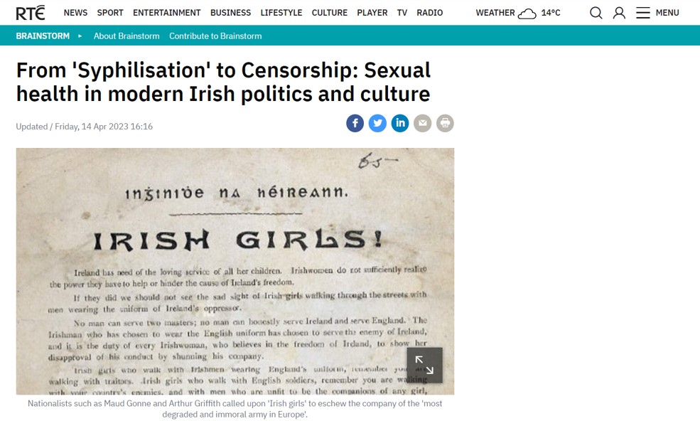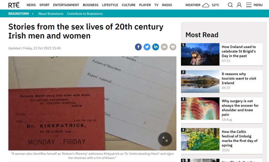 – ‘Stories from the Sex Lives of 20th Century Irish Men and Women’, RTÉ Brainstorm (22 October 2021), Online.